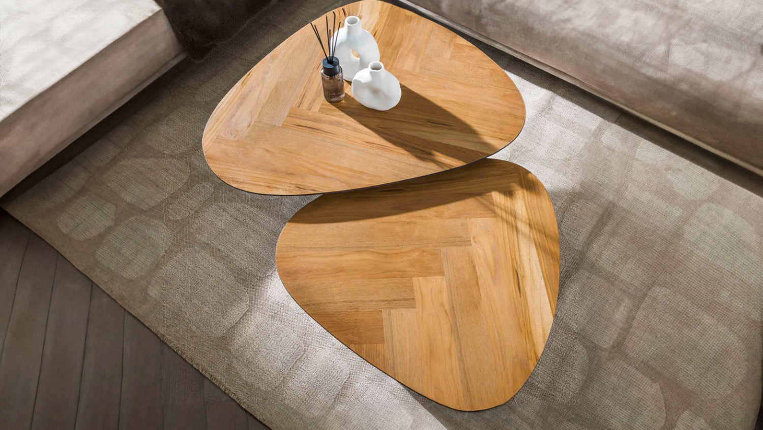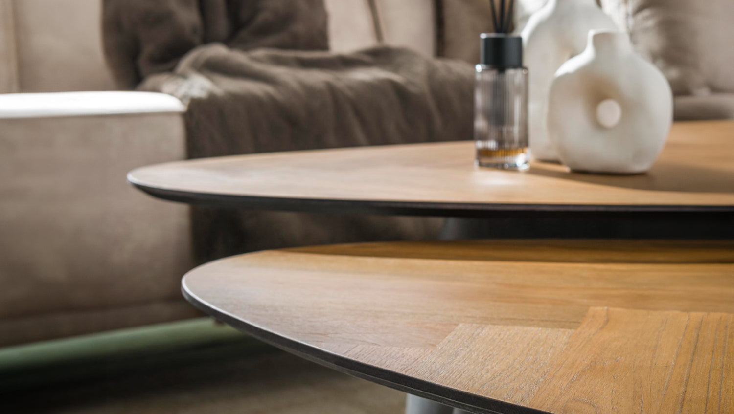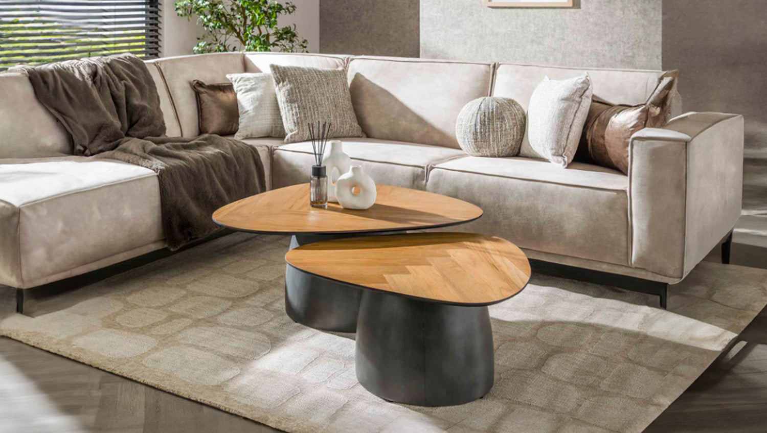 El conjunto de mesa de centro LUJAN de KAWOLA está fabricado en chapa de teca con patas de metal. El bonito tablero con diseño de espiga crea un aspecto cálido y natural, mientras que las estilizadas patas de metal añaden un toque moderno. El marco negro no sólo proporciona estabilidad, sino que también acentúa el elegante diseño de las mesas. Estas versátiles mesas son ideales para diversos usos, como un acogedor salón o un elegante espacio de trabajo. La combinación de materiales y colores hace que se integren fácilmente en diferentes estilos de interior, desde el industrial al minimalista. El conjunto consta de dos mesas. La mesa más grande mide 90 x 75 cm con una altura de 40 cm, la más pequeña 75 x 65 cm con una altura de 36 cm. Ya sea moderno, rústico o clásico, el juego de mesa de centro LUJAN se adapta sin esfuerzo a cualquier estilo de decoración gracias a su aspecto atemporal. Ideal como centro de mesa con estilo en el salón y una auténtica atracción para los amantes de los muebles de alta calidad.