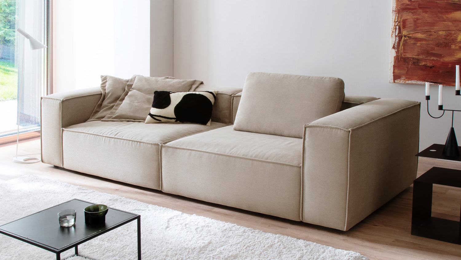 KAWOLA Sofá CARMO 3 plazas Pana fina beige