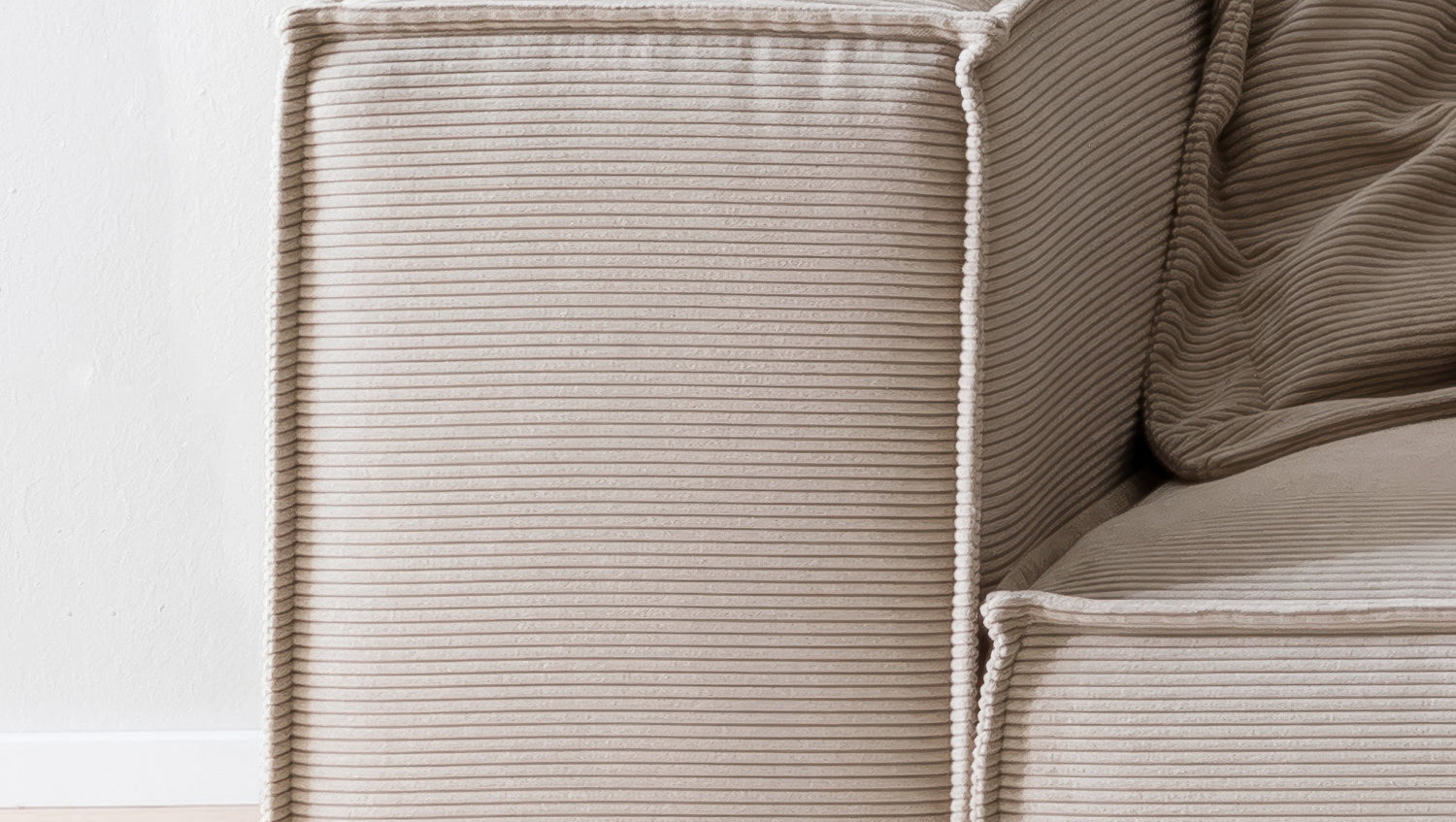 El sofá de 3 plazas CARMO de KAWOLA combina un diseño elegante con el máximo confort. Con su moderno revestimiento de Pana fina, está a la última, ya que la pana vuelve a estar de moda en el mundo de la decoración. Este tejido no sólo impresiona por su tacto especial y su aspecto elegante, sino que también es duradero y fácil de cuidar. Este material texturizado es sinónimo de comodidad con estilo y pone un acento moderno en el salón. Gracias a su bajo nivel de pilling, el sofá conserva su belleza durante mucho tiempo y la suave comodidad del asiento invita a relajarse, ya sea solo o con invitados. Con una anchura de 306 cm, CARMO ofrece espacio de sobra para pasar ratos agradables. El sofá CARMO no es sólo un mueble, sino una declaración de comodidad y estilo, perfecto para cualquiera que aprecie los asientos cómodos, los materiales de alta calidad y el diseño de tendencia.