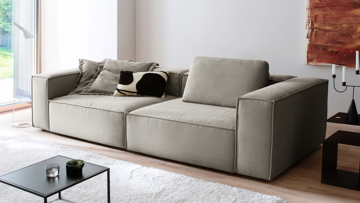 El sofá de 3 plazas CARMO de KAWOLA combina un diseño elegante con el máximo confort. Con su moderno revestimiento de Pana fina, está a la última, ya que la pana vuelve a estar de moda en el mundo de la decoración. Este tejido no sólo impresiona por su tacto especial y su aspecto elegante, sino que también es duradero y fácil de cuidar. Este material texturizado es sinónimo de comodidad con estilo y pone un acento moderno en el salón. Gracias a su bajo nivel de pilling, el sofá conserva su belleza durante mucho tiempo y la suave comodidad del asiento invita a relajarse, ya sea solo o con invitados. Con una anchura de 306 cm, CARMO ofrece espacio de sobra para pasar ratos agradables. El sofá CARMO no es sólo un mueble, sino una declaración de comodidad y estilo, perfecto para cualquiera que aprecie los asientos cómodos, los materiales de alta calidad y el diseño de tendencia.