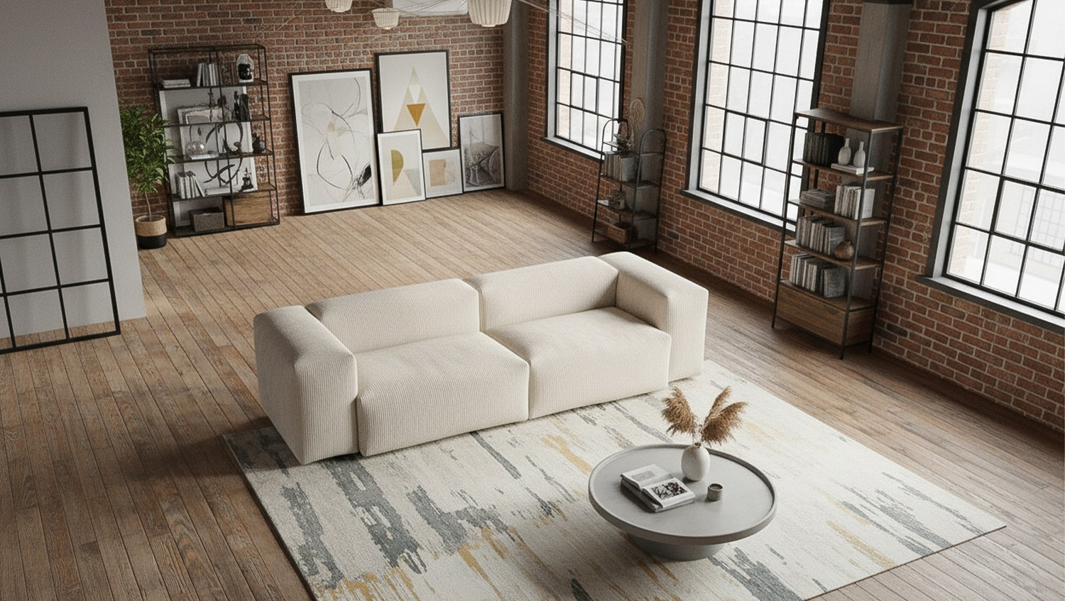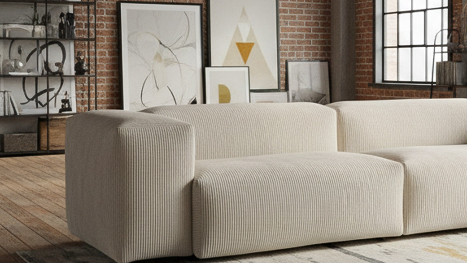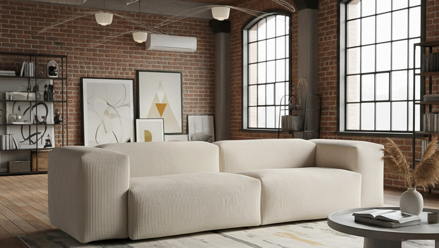 El sofá de 4 plazas CELESTE de KAWOLA combina unas generosas dimensiones con un diseño moderno y escultural. Con una impresionante anchura de 302 cm, una profundidad de 114 cm y una altura de 72 cm, CELESTE ofrece mucho espacio para las horas de relax. El suave revestimiento de pana confiere al sofá un tacto especialmente acogedor y un carácter desenfadado. La fina estructura del tejido crea un efecto visual emocionante que acentúa armoniosamente el diseño cúbico. Los anchos reposabrazos (43 cm) y el profundo asiento (72 cm) crean una zona de asiento excepcionalmente cómoda, perfecta para descansar, leer o relajarse en compañía. Gracias al tapizado de alta calidad, la forma del sofá se mantiene estable y cómoda incluso después de muchos años. CELESTE se convierte así en el lugar central favorito del salón moderno: elegante, acogedor y expresivo al mismo tiempo.