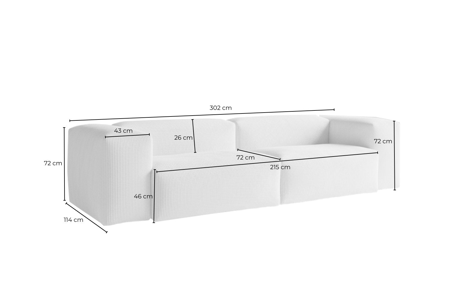 El sofá de 4 plazas CELESTE de KAWOLA combina un diseño moderno con una elección responsable de los materiales. Con sus generosas dimensiones (302 cm de ancho, 114 cm de fondo y 72 cm de alto), irradia presencia y tranquilidad. La funda de tejido de fibra de cuero es una alternativa innovadora al cuero auténtico: está fabricada con fibras de cuero recicladas que se combinan con aglutinantes naturales y fibras textiles. El resultado es un material resistente y de alta calidad, con un aspecto de cuero auténtico y un tacto agradablemente suave. El tejido de fibra de cuero es fácil de cuidar, estable dimensionalmente y transpirable al mismo tiempo: ideal para familias o personas preocupadas por el diseño que valoran la sostenibilidad sin querer renunciar a la elegancia. En combinación con el asiento profundo (72 cm), la altura del asiento de 46 cm y los anchos reposabrazos (43 cm), el resultado es un mueble de asiento que combina a la perfección comodidad, estilo y conciencia medioambiental.