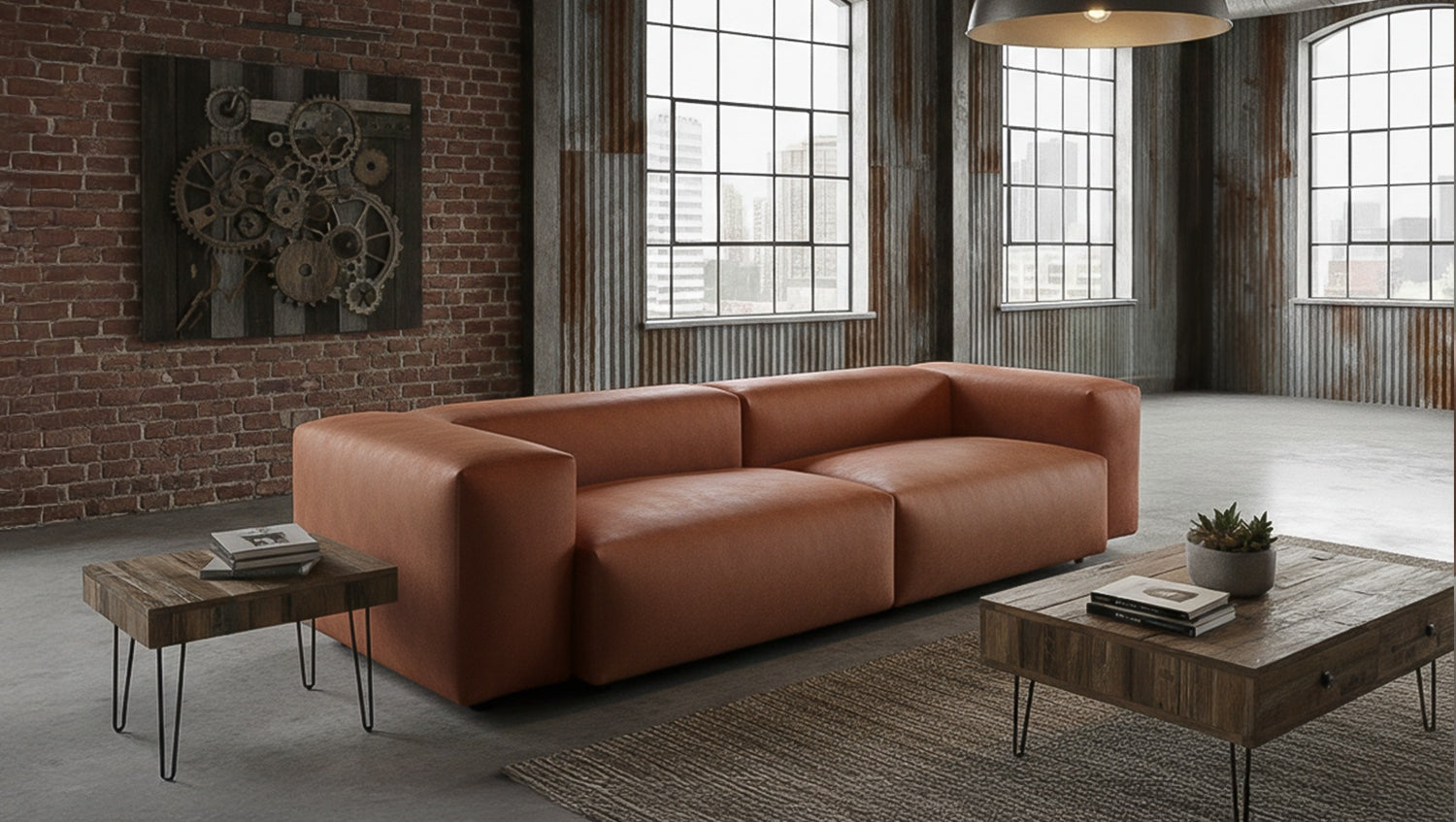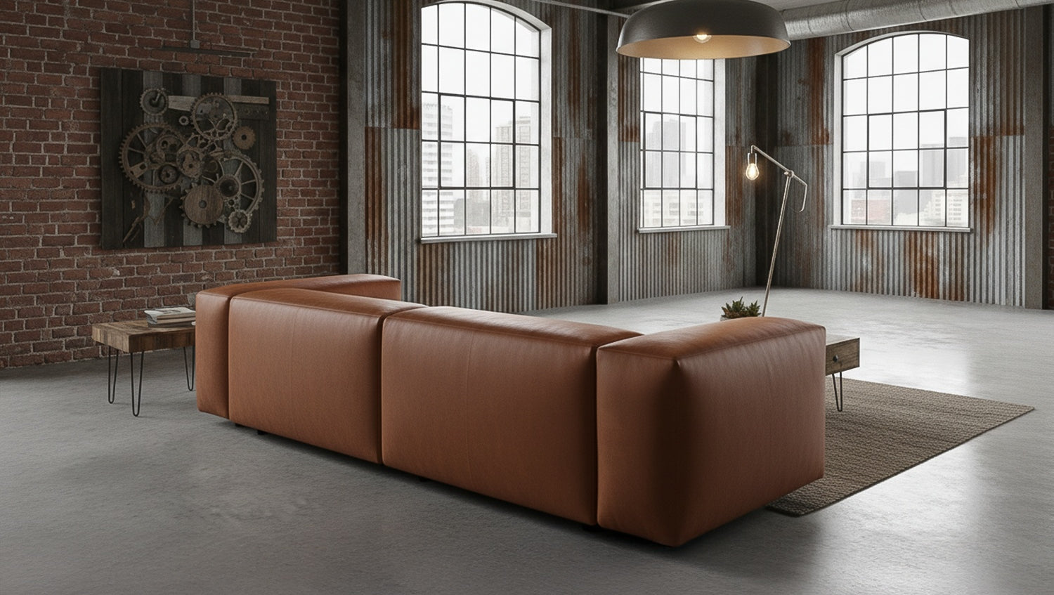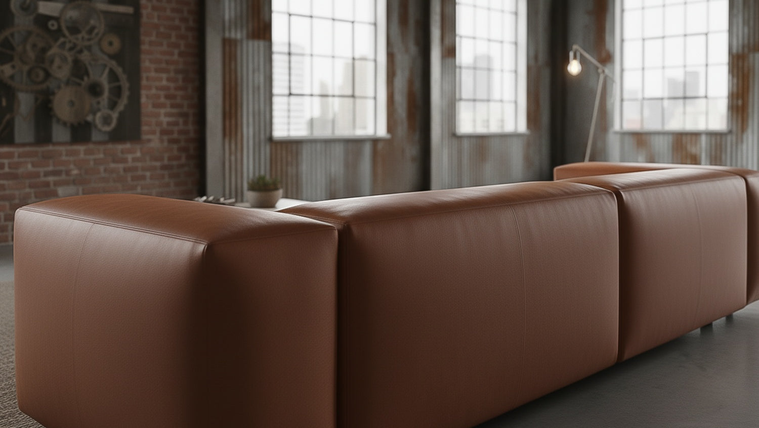 • Amplio sofá de diseño (ancho 302 × fondo 114 × alto 72 cm) de innovador tejido de fibra de cuero
