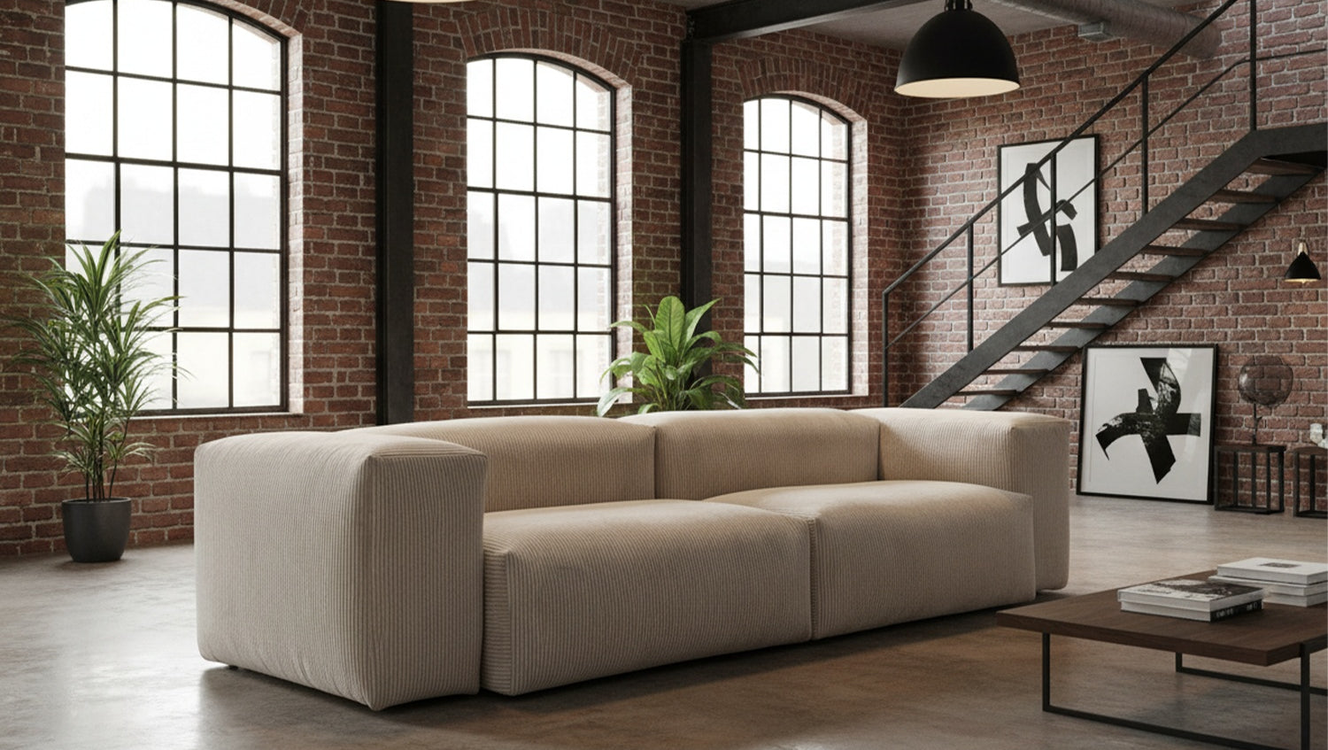 El sofá de 4 plazas CELESTE de KAWOLA combina unas generosas dimensiones con un diseño moderno y escultural. Con una impresionante anchura de 302 cm, una profundidad de 114 cm y una altura de 72 cm, CELESTE ofrece mucho espacio para las horas de relax. El suave revestimiento de pana confiere al sofá un tacto especialmente acogedor y un carácter desenfadado. La fina estructura del tejido crea un efecto visual emocionante que acentúa armoniosamente el diseño cúbico. Los anchos reposabrazos (43 cm) y el profundo asiento (72 cm) crean una zona de asiento excepcionalmente cómoda, perfecta para descansar, leer o relajarse en compañía. Gracias al tapizado de alta calidad, la forma del sofá se mantiene estable y cómoda incluso después de muchos años. CELESTE se convierte así en el lugar central favorito del salón moderno: elegante, acogedor y expresivo al mismo tiempo.