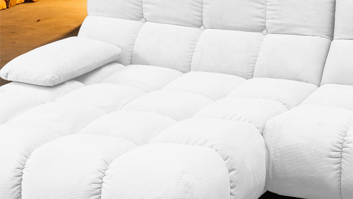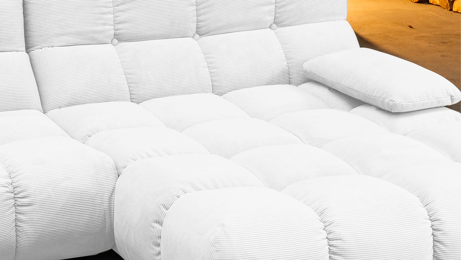KAWOLA Sofá VIVIEN Sofá esquinero Pana fina blanco