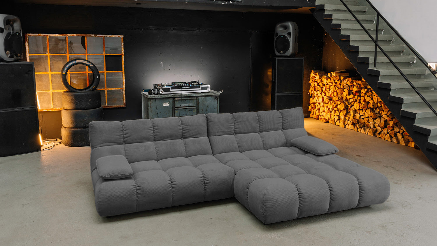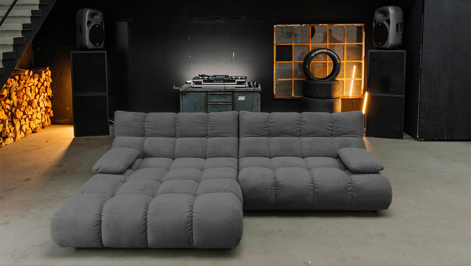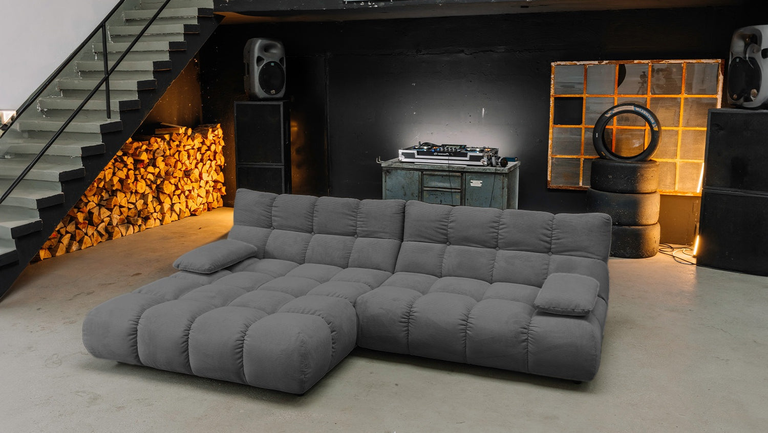 KAWOLA Sofá VIVIEN Sofá esquinero Pana fina antracita
