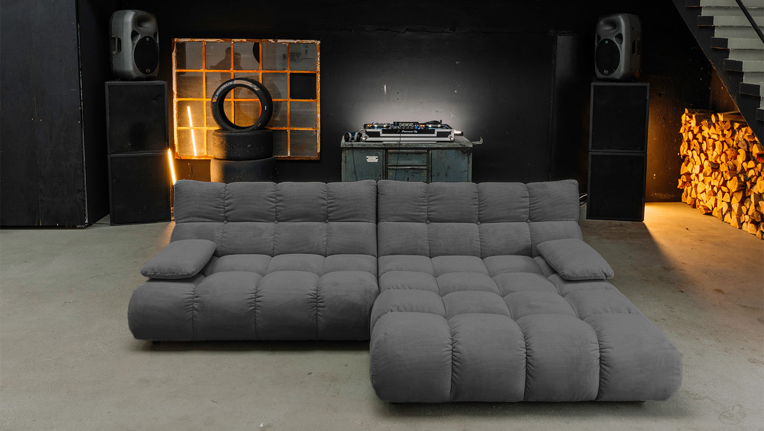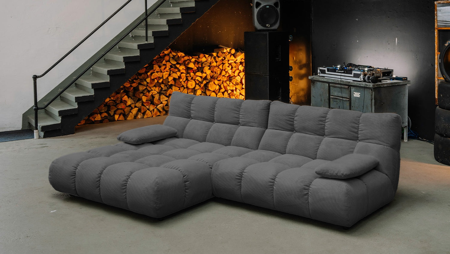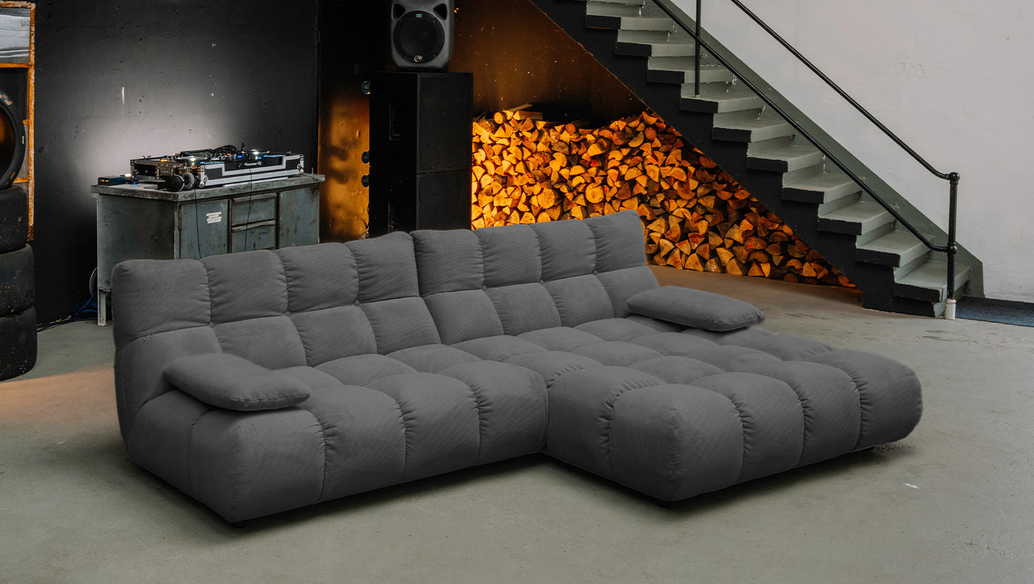KAWOLA Sofá VIVIEN Sofá esquinero Pana fina antracita