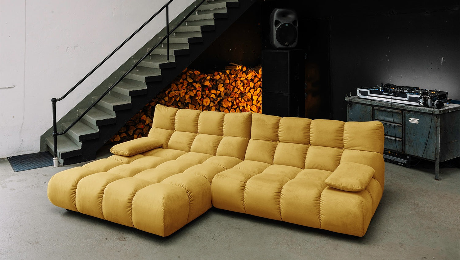 KAWOLA Sofá VIVIEN Sofá rinconera Terciopelo curry