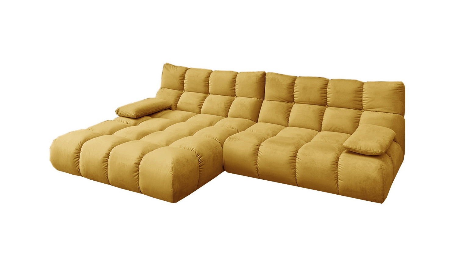 El sofá esquinero KAWOLA VIVIEN impresiona por su acertada combinación de diseño moderno y lujoso confort. Con su generosa forma esquinera, se convertirá en la pieza central de su salón, perfecto para veladas acogedoras a solas o con invitados. La baja altura del asiento de 41 cm y la profunda superficie de asiento de 72 cm invitan a reclinarse y relajarse, mientras que la elegante funda de terciopelo crea un aspecto elegante e impresiona por su superficie aterciopelada y suave. El fino brillo confiere al sofá esquinero un aspecto de especial calidad y añade un elegante acento a la habitación. Gracias al cuidado tapizado, podrá disfrutar de la máxima comodidad al sentarse: los muelles ondulados de acero combinados con una estructura de espuma HR/fría multicapa garantizan una estabilidad duradera y una sensación de asiento uniforme. El sofá VIVIEN es un impresionante sofá esquinero moderno de líneas limpias, aspecto acogedor y un toque de lujo.