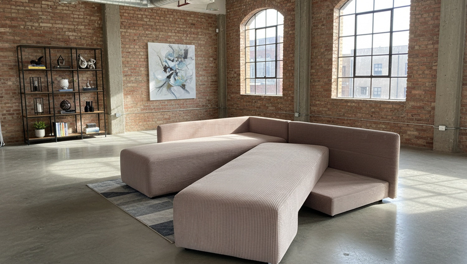 El sofá cama y sofá rinconera SADIRA de KAWOLA combina un generoso confort para vivir, una sofisticada función para dormir y un diseño moderno y acogedor. La suave funda de pana confiere al sofá un aspecto especialmente acogedor y garantiza una agradable sensación que invita a relajarse. Con sus líneas claras, su aspecto de suelo a techo y su voluminosa tapicería, SADIRA se integra armoniosamente en los conceptos de vida modernos y se convierte rápidamente en la pieza central de la habitación. La generosa solución de esquina ofrece mucho espacio para veladas relajadas, reuniones sociales o momentos tranquilos. El sofá puede transformarse en una cómoda zona de descanso en unos pocos pasos. El tapizado continuo garantiza una sensación de tumbado uniforme y convierte a SADIRA en una solución ideal para invitados o para su uso habitual como sofá cama. La funda de pana acentúa aún más su carácter hogareño y transmite calidez y confort. El volumen de suministro incluye seis cojines, dos de ellos especialmente diseñados como cojines para dormir, que proporcionan un confort adicional tanto de día como de noche. Con una anchura total de 288 cm y una generosa otomana de 209 cm, SADIRA ofrece mucho espacio para sentarse, reclinarse y dormir. La altura del respaldo de 89 cm favorece una posición sentada relajada y contribuye al alto nivel de confort. SADIRA con tapicería Pana es la elección perfecta para quien busque un sofá cama moderno que combine de forma convincente comodidad, funcionalidad y diseño elegante.
