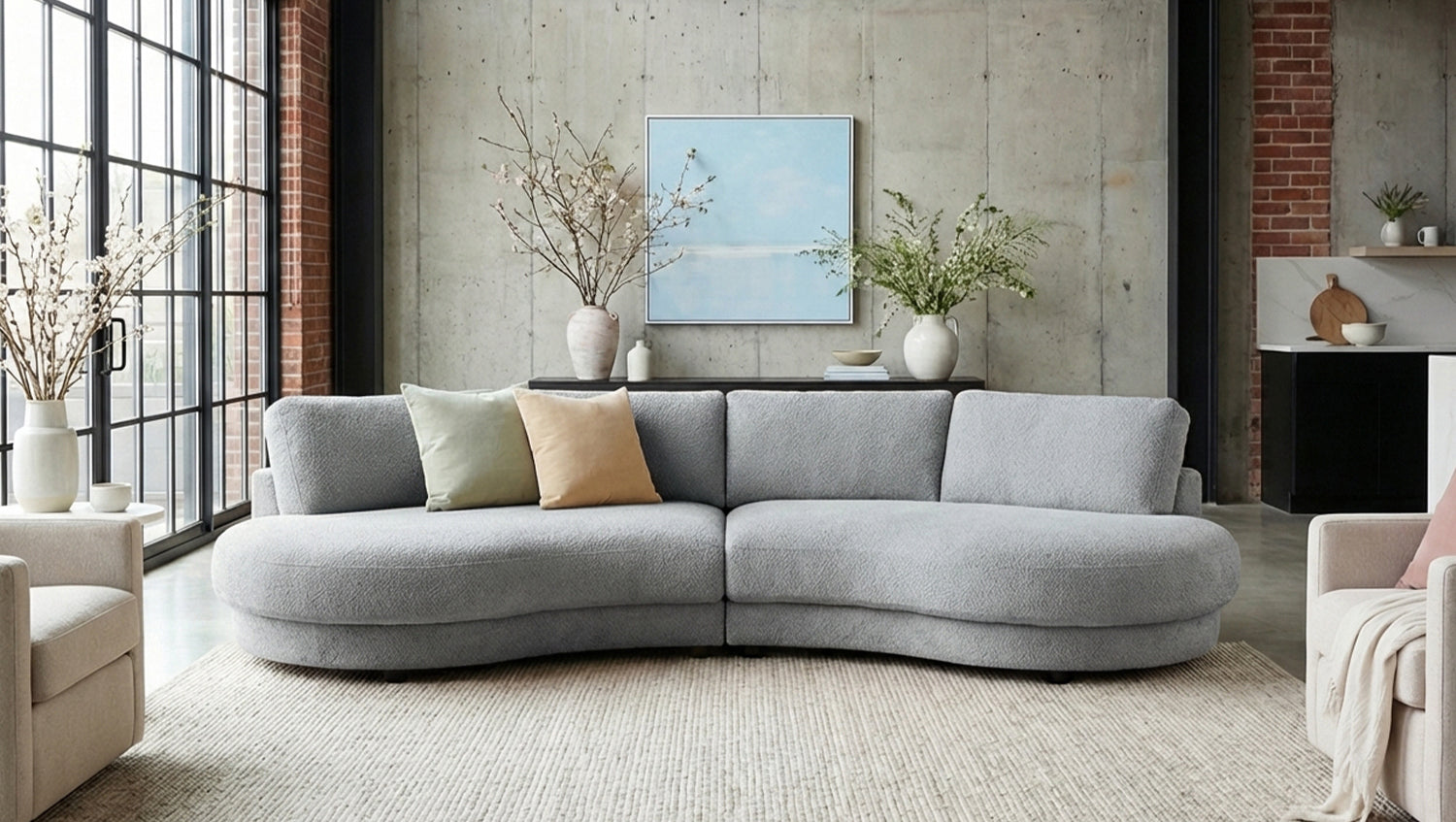 El sofá extra ancho PADANA de KAWOLA es una auténtica pieza estrella para los salones modernos. Con su impresionante anchura de 410 cm y una cómoda profundidad de 166 cm, ofrece un espacio extraordinario para relajarse, descansar y pasar tiempo en compañía. Su forma orgánica y suavemente curvada confiere al sofá un aspecto suave y acogedor, convirtiéndolo en el centro de atención de cualquier salón. El tapizado de chenilla de alta calidad no solo convence a la vista, sino también al tacto: su textura recuerda discretamente a la lana de oveja y aporta un aspecto especialmente acogedor y cálido. Al mismo tiempo, el material se caracteriza por una formación de bolitas muy reducida, lo que garantiza una superficie siempre bonita incluso con un uso intensivo. Gracias a su tapizado integral, el PADANA también se puede colocar libremente en cualquier punto de la habitación. En su interior, una estructura estable de madera maciza garantiza durabilidad y estabilidad. El asiento está equipado con muelles ondulados de acero de elasticidad duradera y se complementa con espuma de poliuretano de alta calidad. Esta combinación garantiza un confort de asiento agradable con un soporte óptimo. El sofá extra ancho PADANA combina dimensiones generosas, materiales de alta calidad y un diseño atemporal en un mueble que redefine el concepto de comodidad. Ideal para todos aquellos que aprecian un espacio extraordinario y una comodidad con estilo.