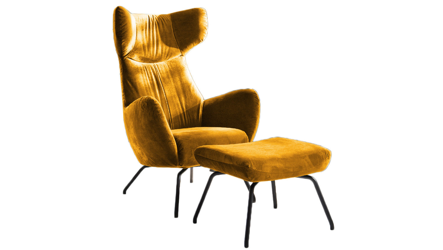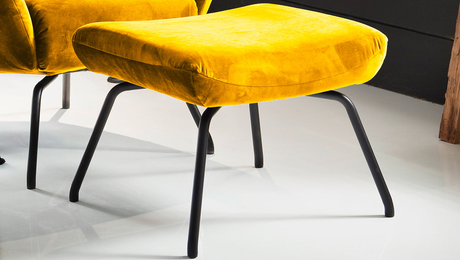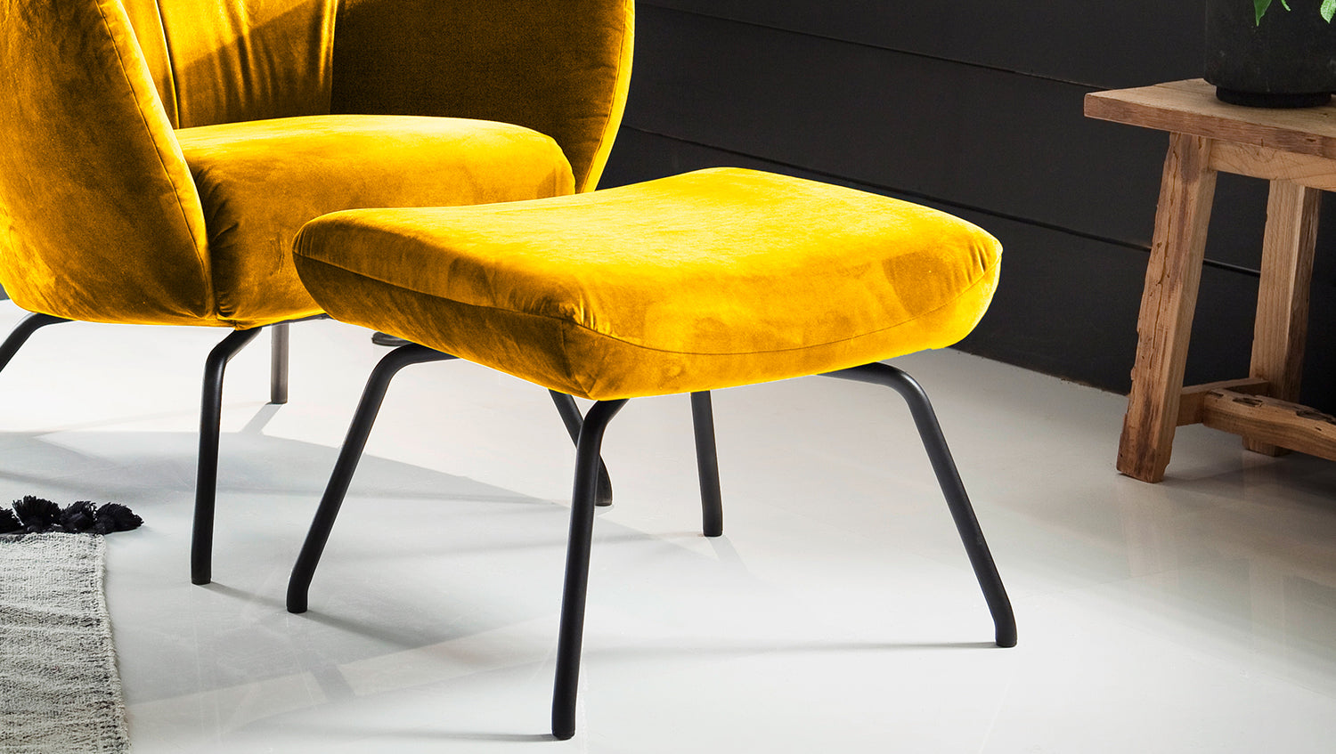 Sillón KAWOLA Sillón LOTTE curry terciopelo con Puf