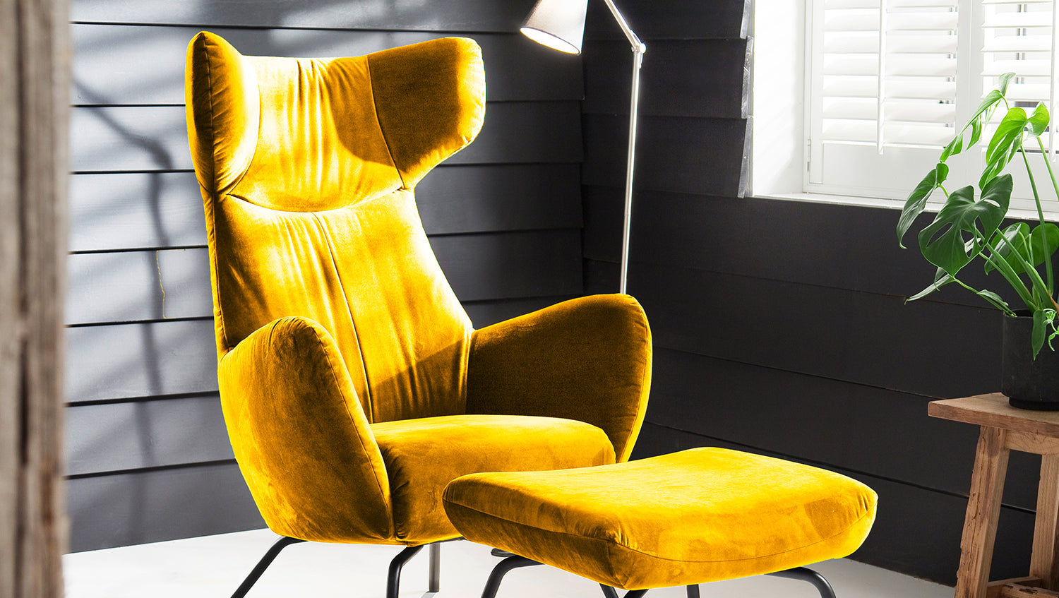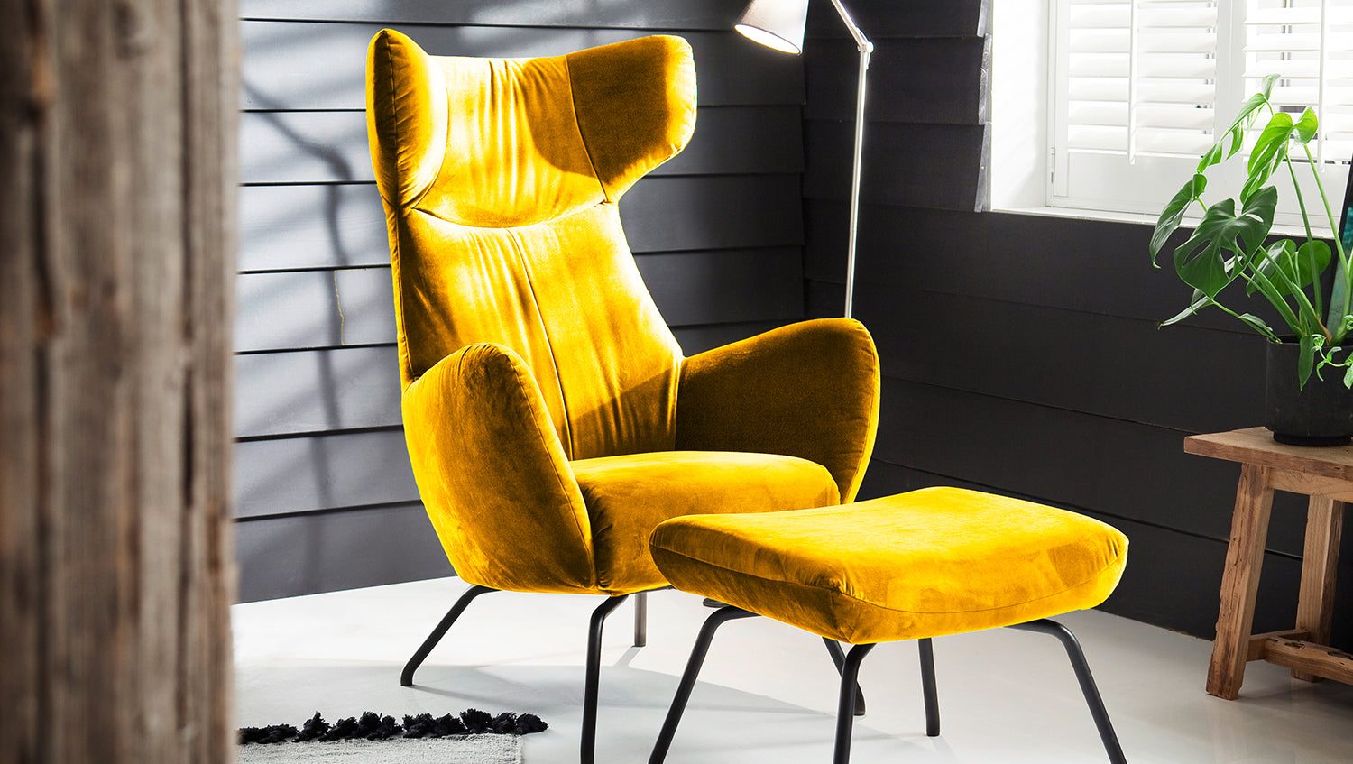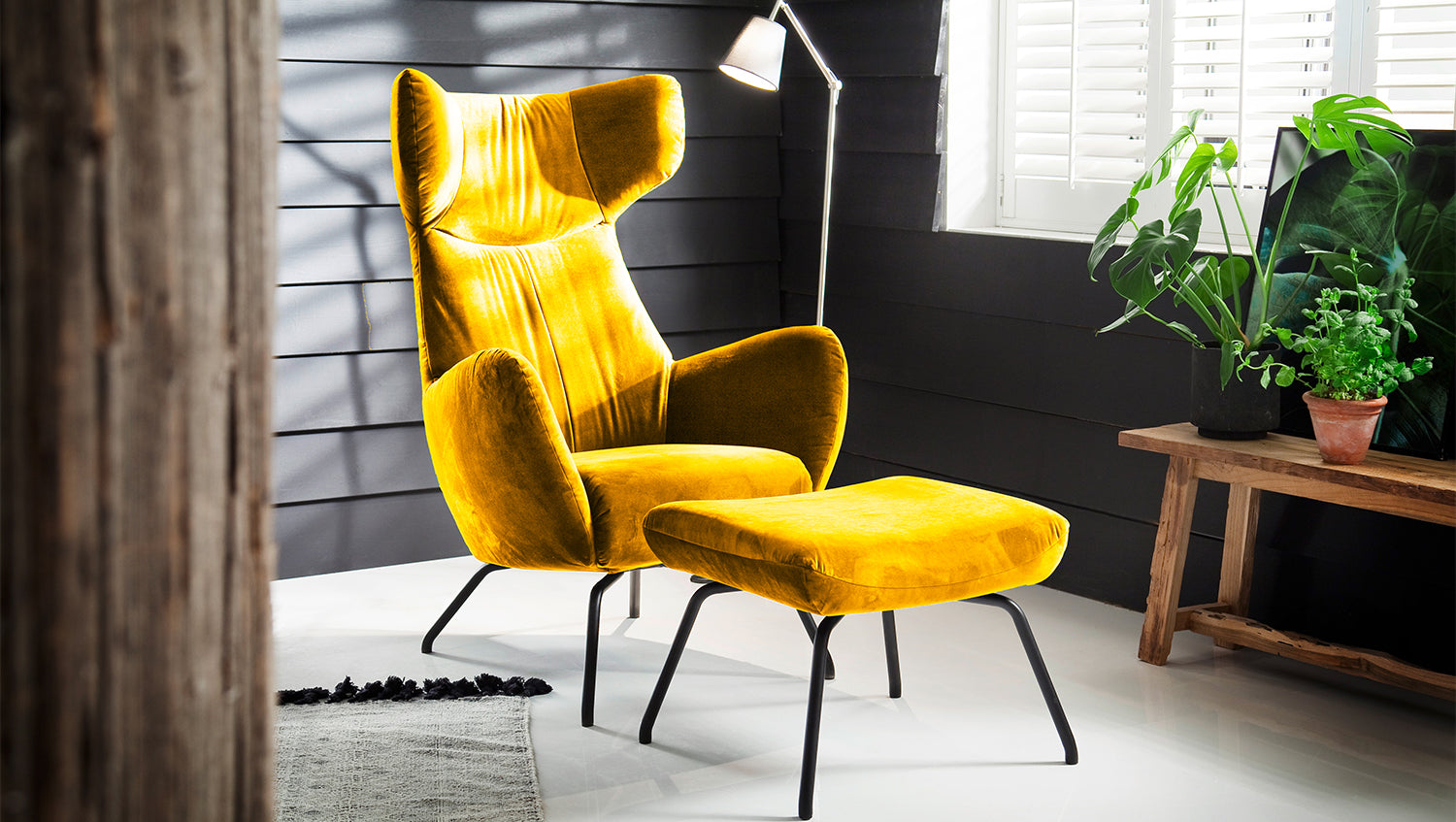 Sillón KAWOLA Sillón LOTTE curry terciopelo con Puf