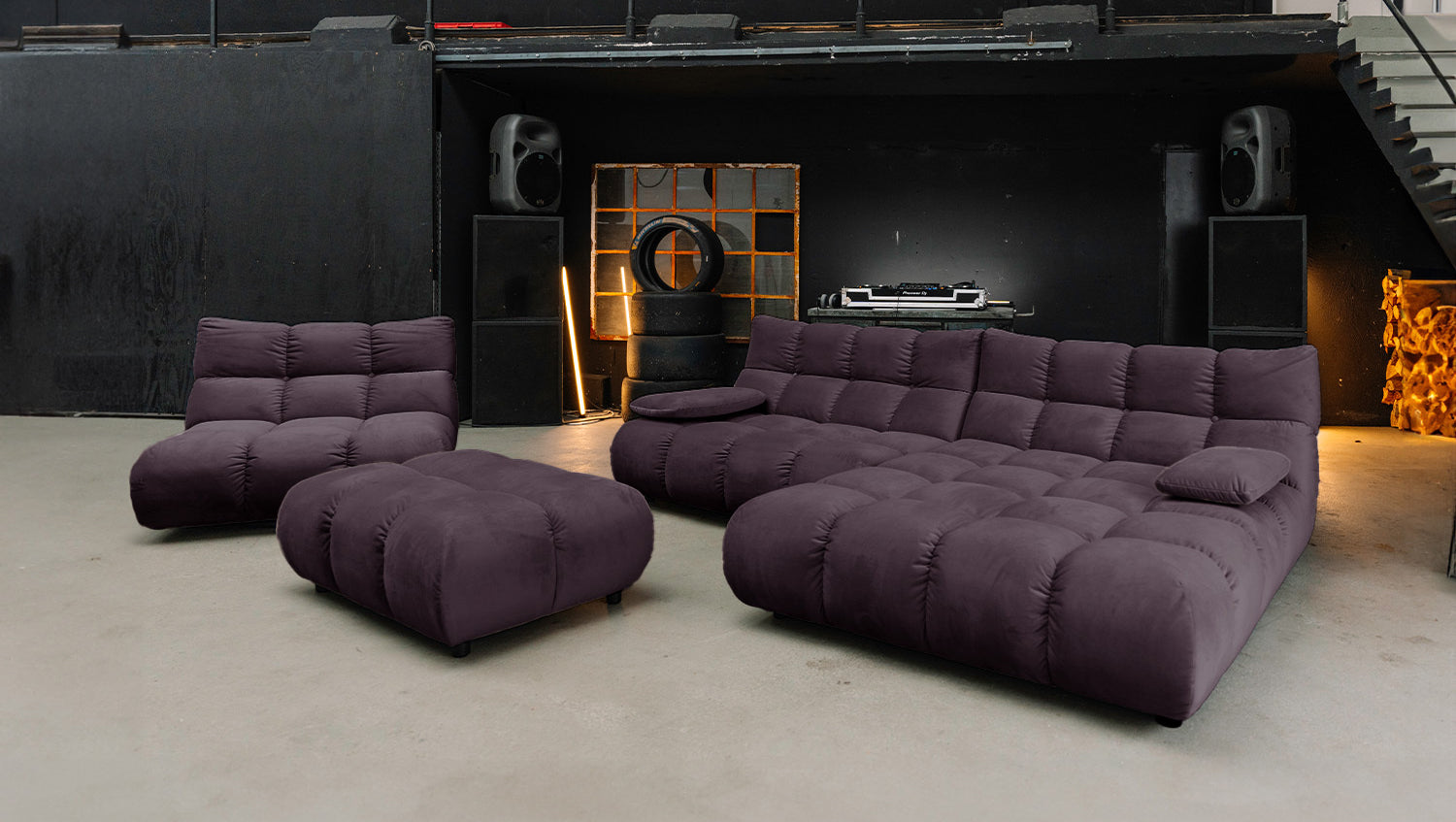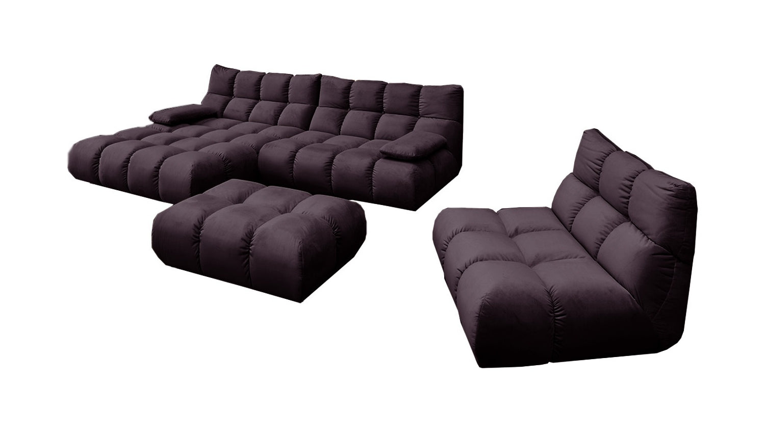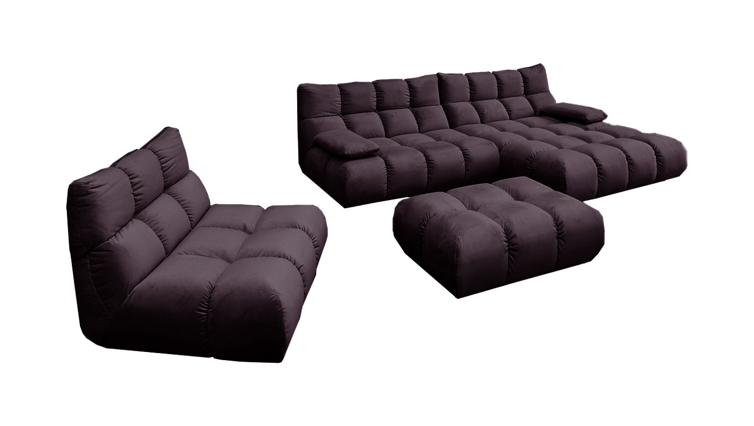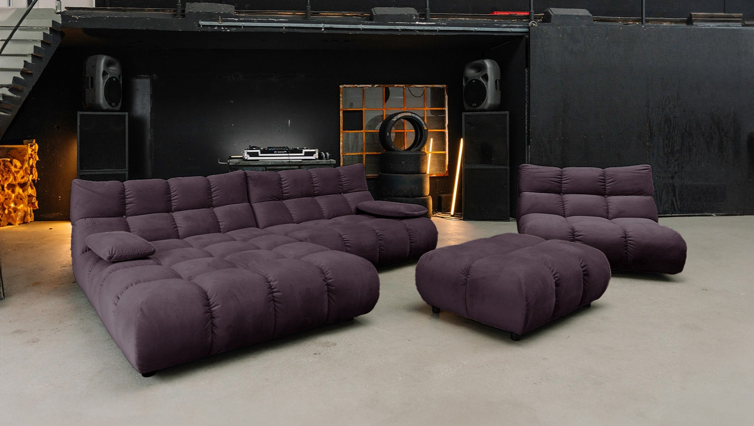 KAWOLA grupo de asientos VIVIEN esquina sofá giratorio sillón taburete Banco Terciopelo púrpura