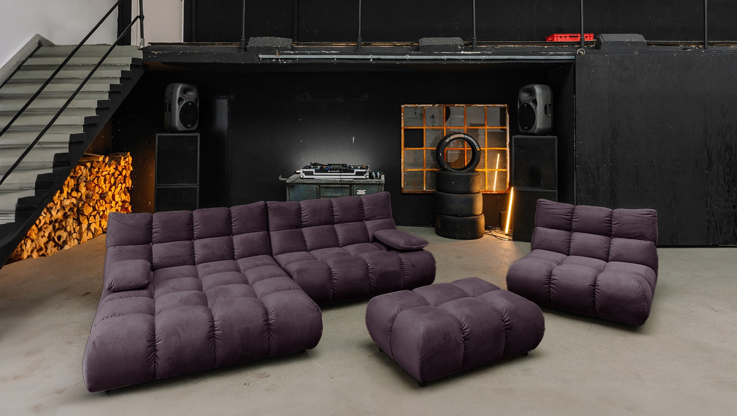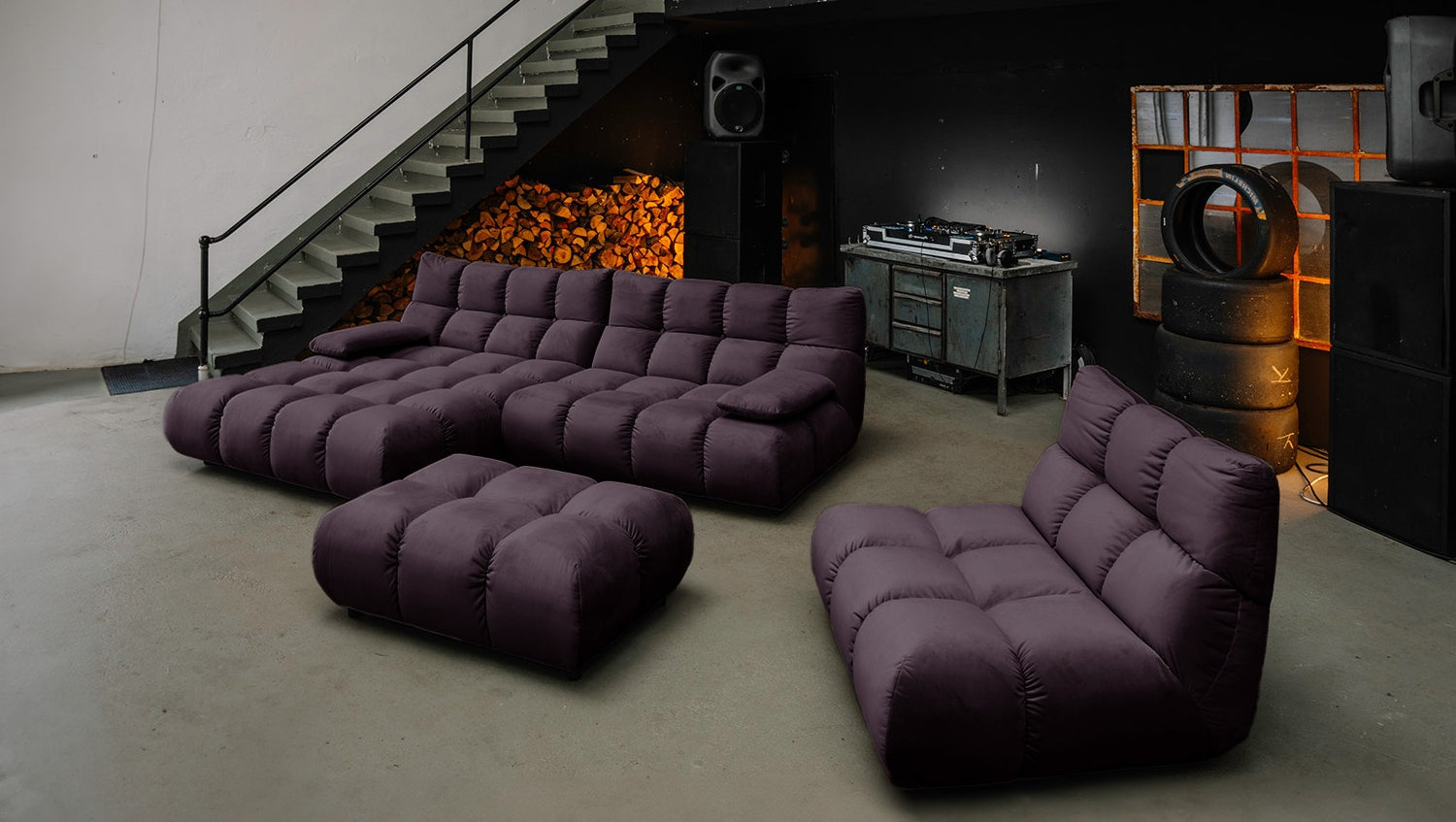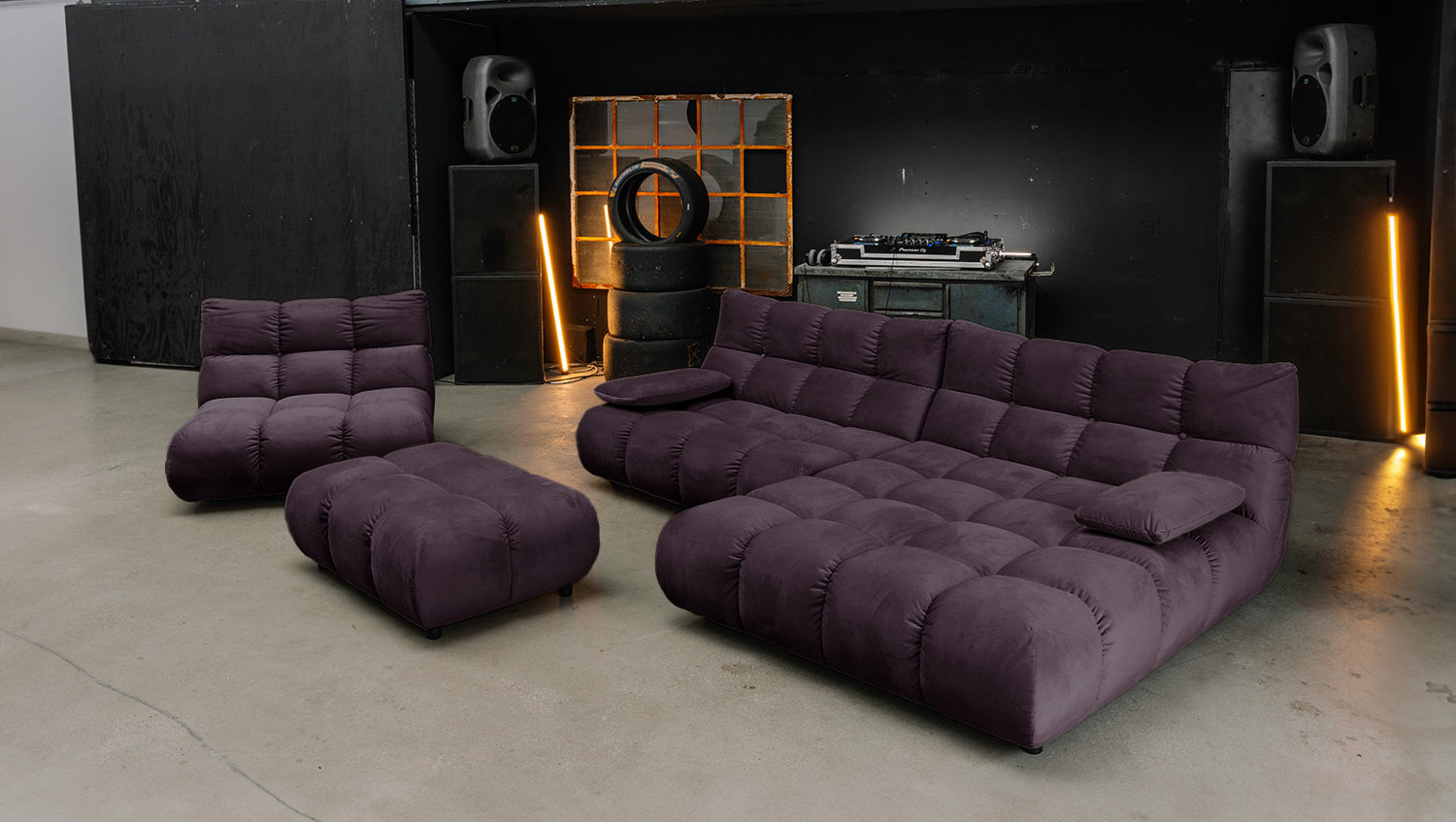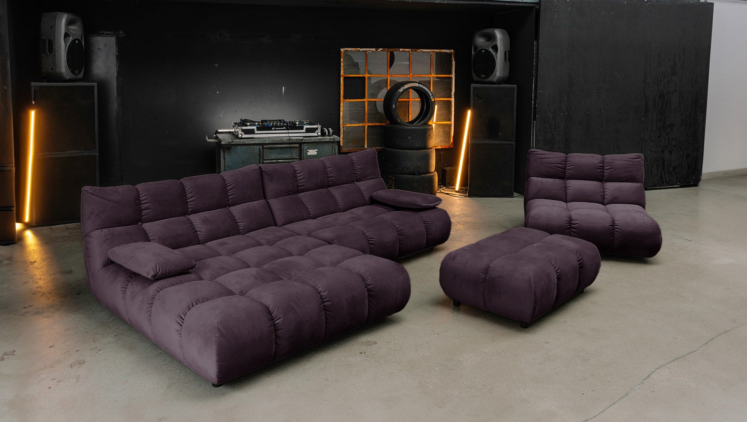 KAWOLA grupo de asientos VIVIEN esquina sofá giratorio sillón taburete Banco Terciopelo púrpura
