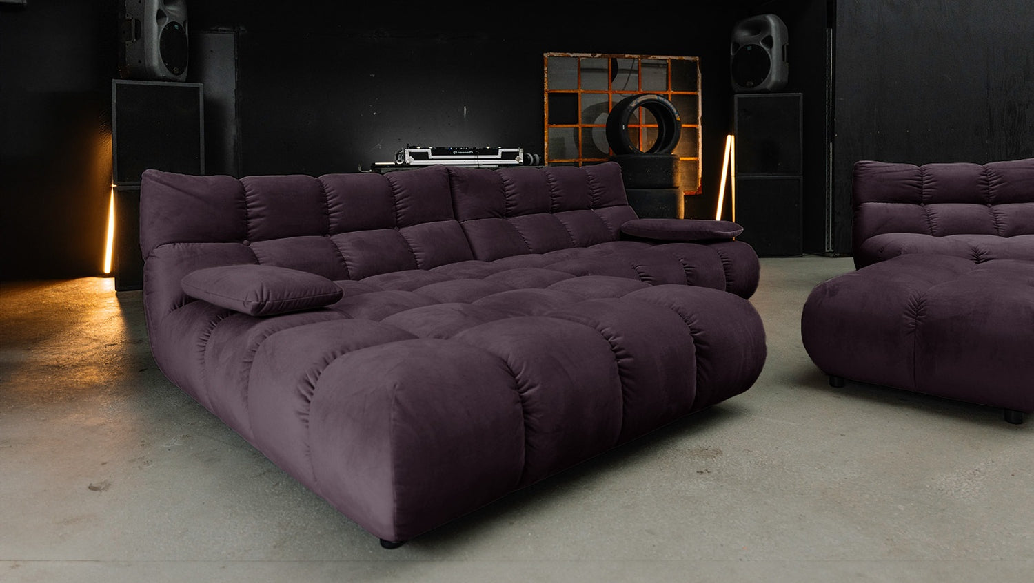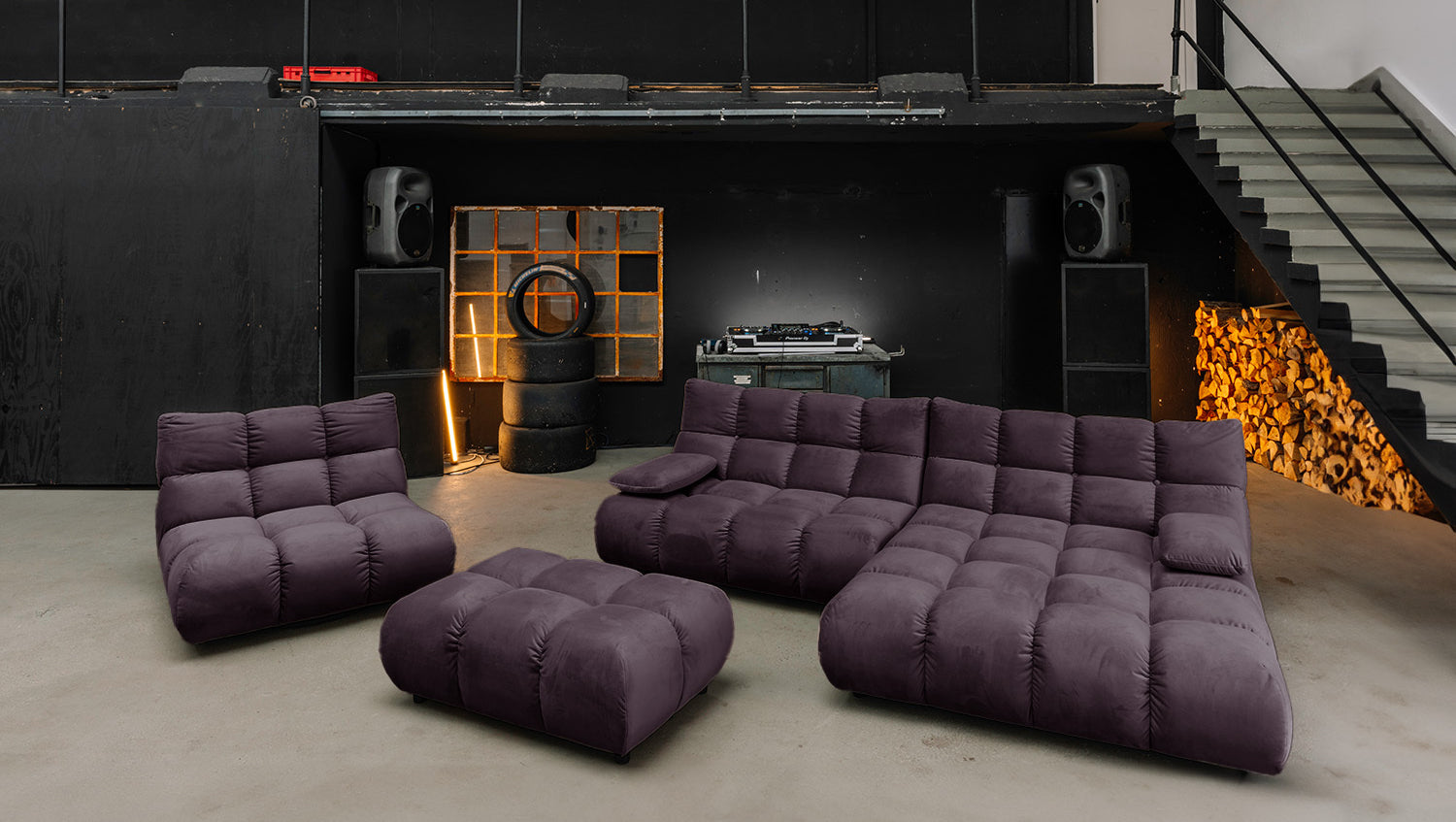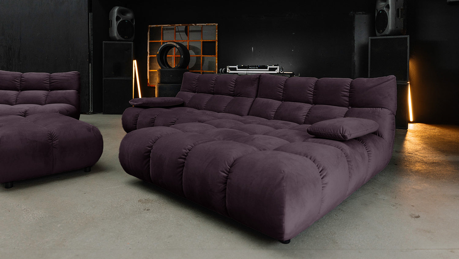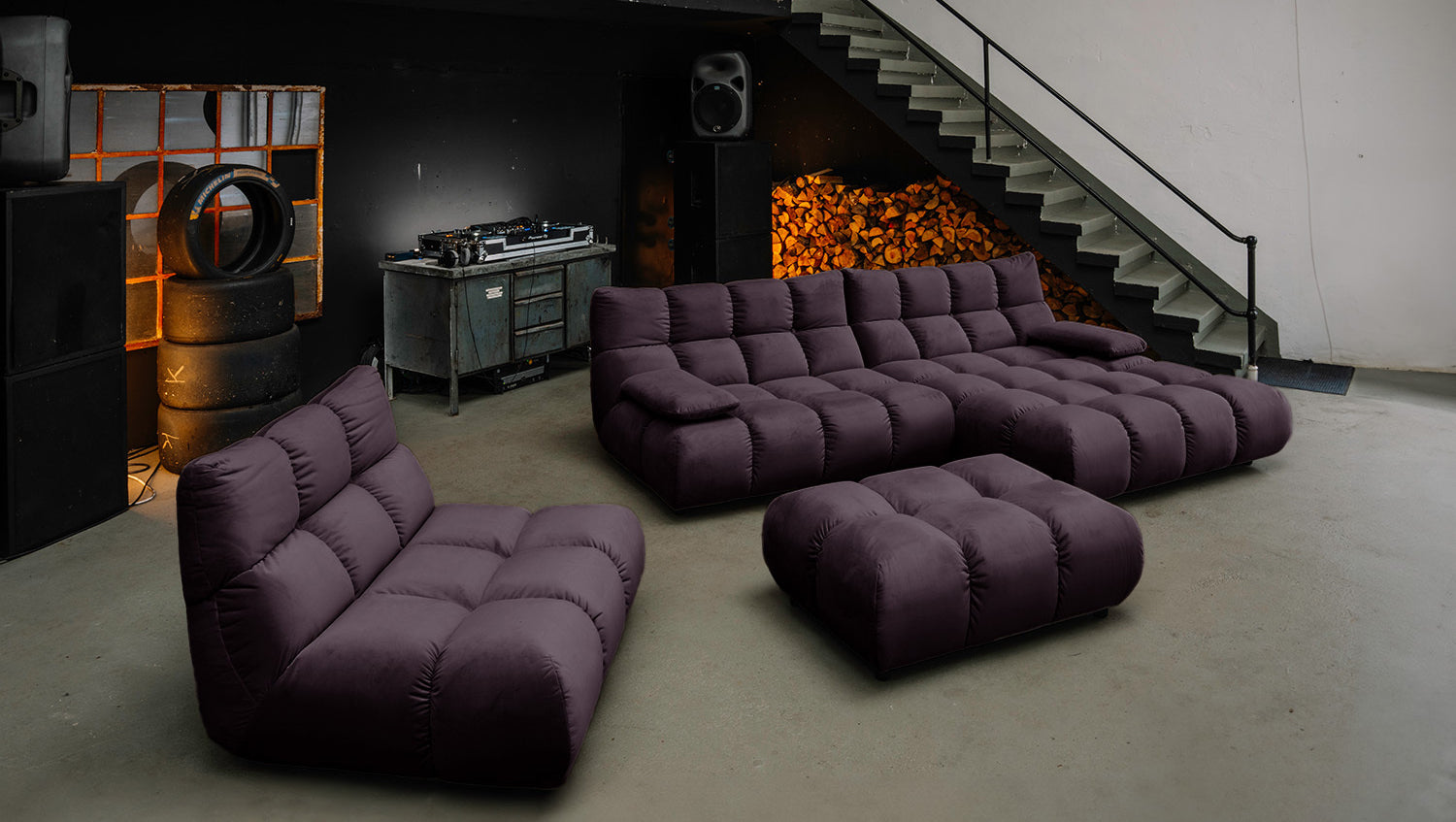KAWOLA grupo de asientos VIVIEN esquina sofá giratorio sillón taburete Banco Terciopelo púrpura