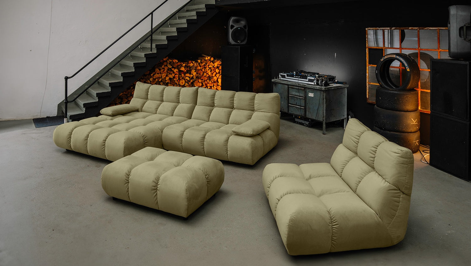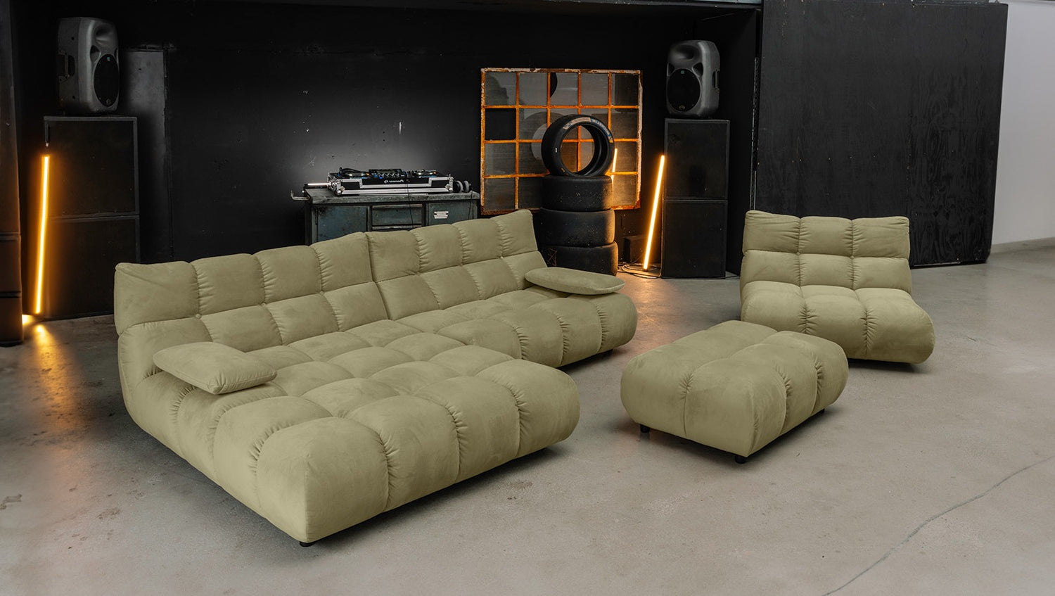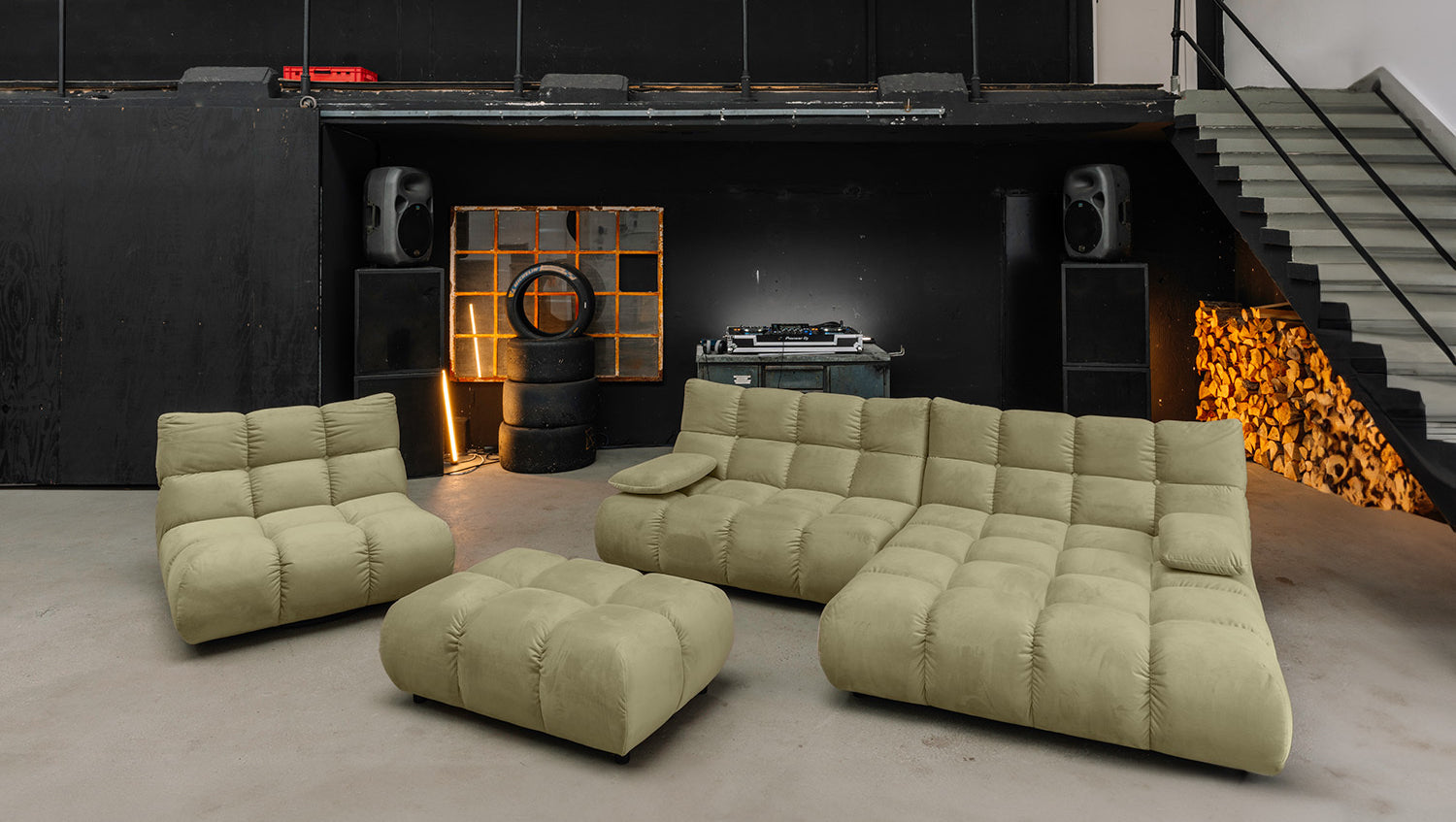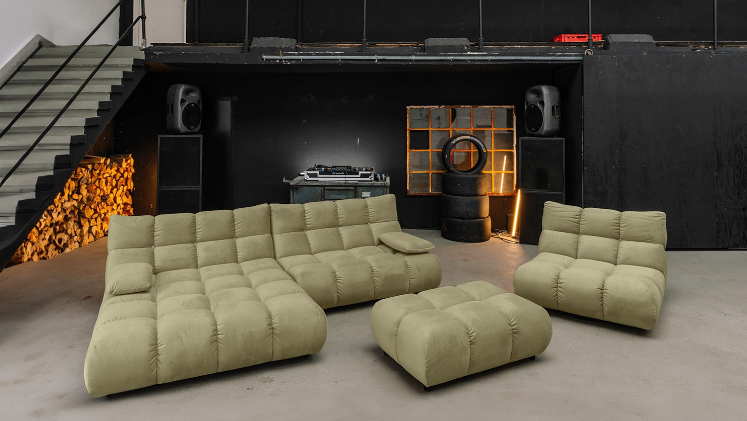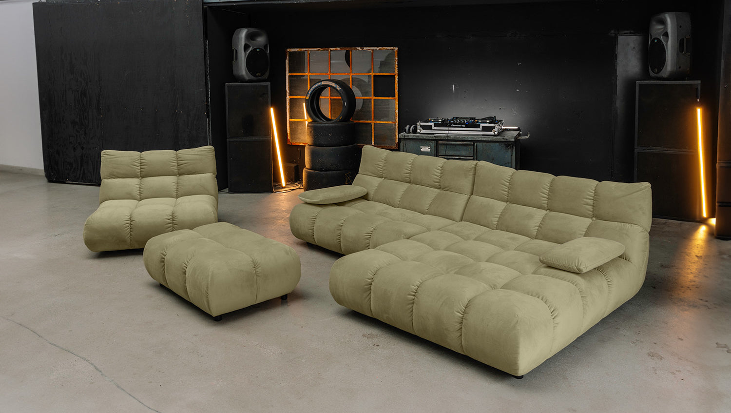 • FUNCIONES PRÁCTICAS - sofá para relajarse, Puf como complemento flexible, silla giratoria con función 360