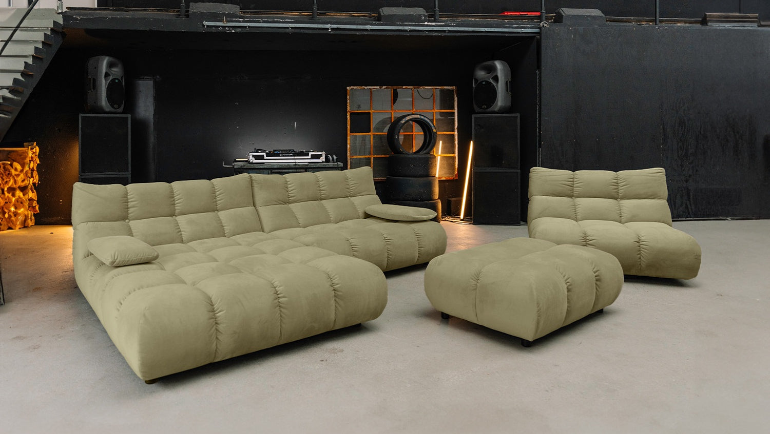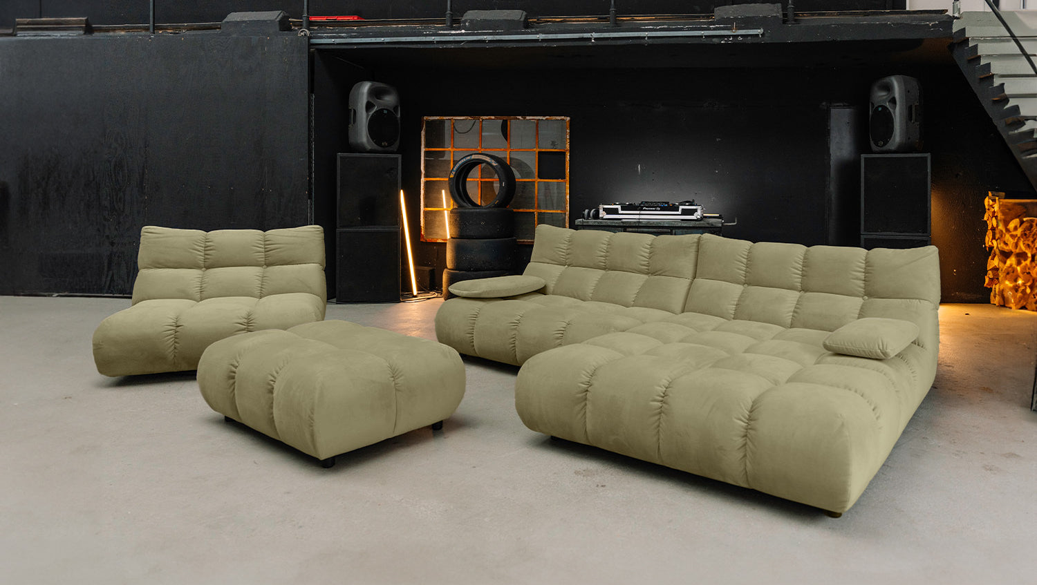 • ELEGANTE SITZGRUPPE - sofá esquinero, banco taburete y sillón giratorio de diseño lujoso