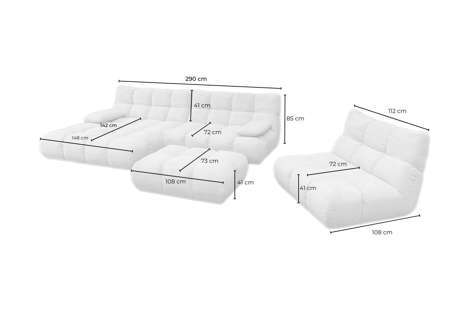 El grupo de asientos KAWOLA VIVIEN combina un aspecto lujoso con el máximo confort y funcionalidad. El conjunto se compone de un espacioso sofá esquinero, un versátil banco taburete y un cómodo sillón giratorio; juntos crean un conjunto armonioso para la vida moderna. El sofá esquinero invita a relajarse con su profundo asiento y su acogedor tapizado. El banco reposapiés complementa el sofá de forma flexible como asiento, reposapiés o zona de almacenamiento. El sillón giratorio con función de 360° garantiza libertad de movimiento y ofrece un asiento cómodo, mientras que el tapizado en fino terciopelo da al grupo de asientos un toque elegante. La superficie aterciopelada y el fino brillo hacen que cada mueble atraiga las miradas y cree un ambiente lujoso. La combinación de muelles ondulados de acero de elasticidad permanente y espuma HR/fría multicapa garantiza una estabilidad duradera y la máxima comodidad de asiento. El grupo de asientos VIVIEN es la elección ideal para quien busca un conjunto completo para el salón con un diseño moderno, un aspecto elegante y un espacio generoso.